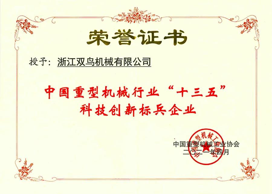 以創(chuàng)新應(yīng)變 為制造賦能 | 雙鳥機械榮獲“中國重型機械行業(yè)'十三五'科技創(chuàng)新標(biāo)兵企業(yè)”