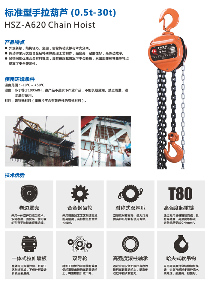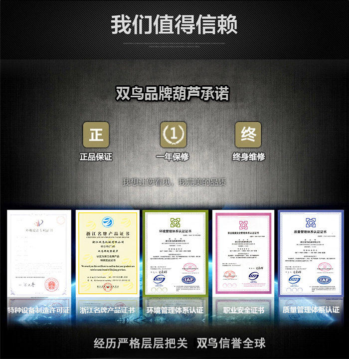 8.起重鏈條是特殊合金鋼制作并經過熱處理,不能私自進行焊接或改裝。